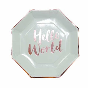 The rose gold foiled Hello World design is the perfect way to serve tasty nibbles at your celebration – and without the mess!