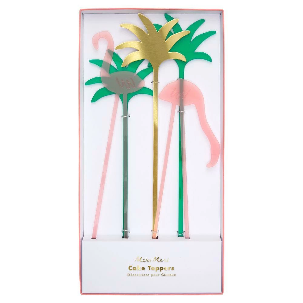 Turn cakes into tropical works of art with these brilliant flamingo and palm tree acrylic toppers.