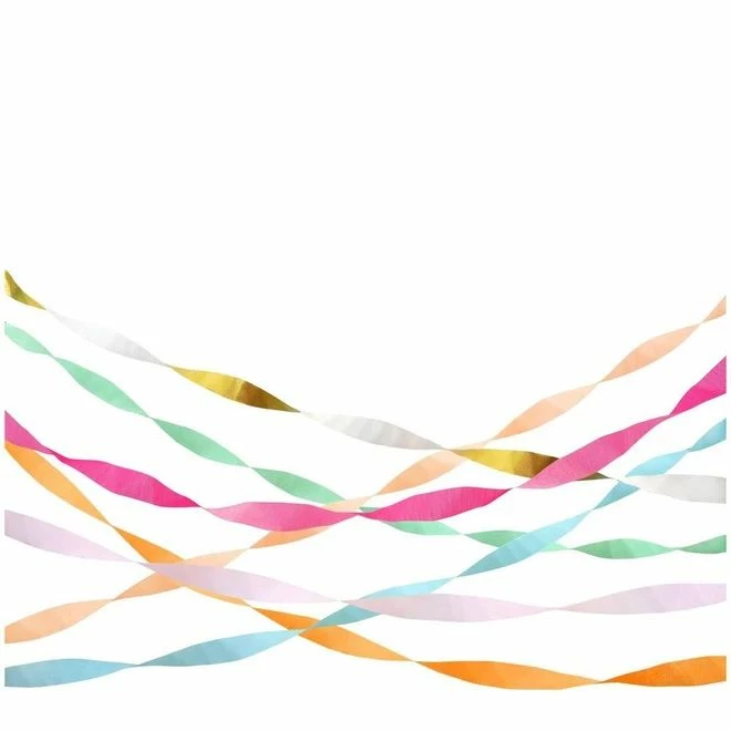 These rainbow paper streamers are perfect to add a splash of colour to any party. Featuring seven different coloured streamers.