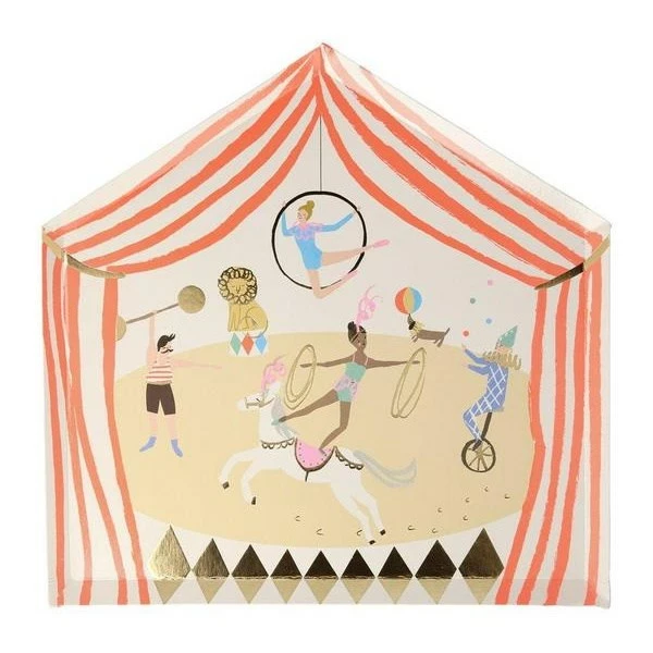 These colorful Circus Parade plates are beautifully illustrated with circus characters. Perfect for a circus-themed party, or any party where you want charming tableware.