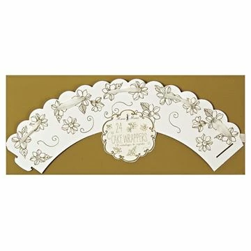 The perfect way to add the finishing touches to your cupcakes – these cake wrappers are so elegant. With a scallop edge and floral pattern in gold and a fine ribbon tie.