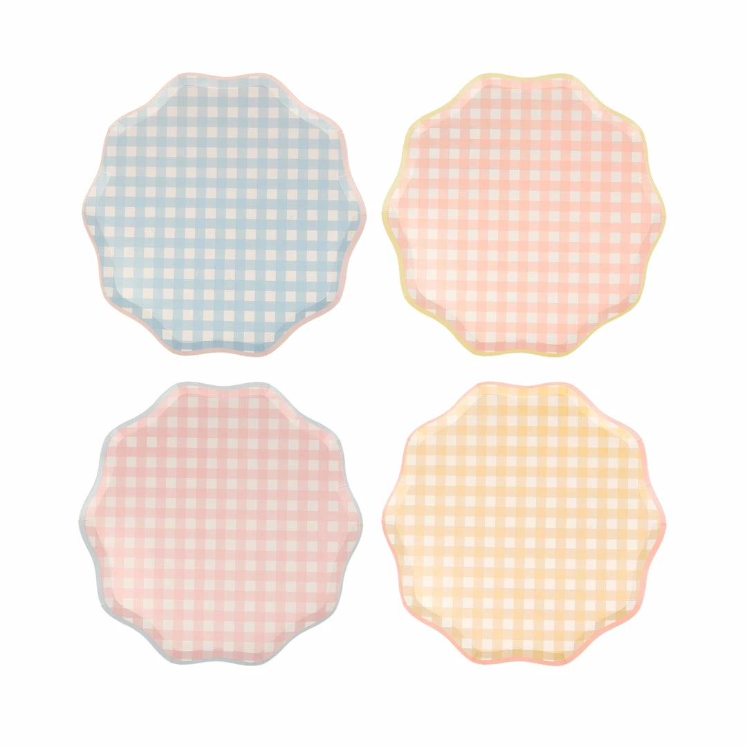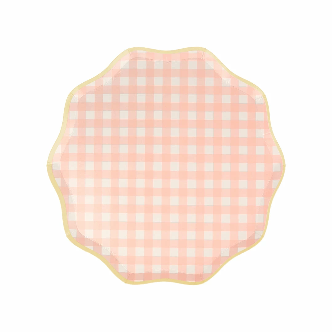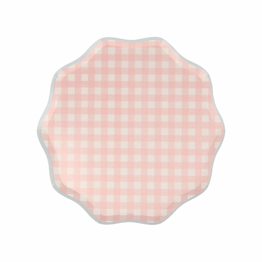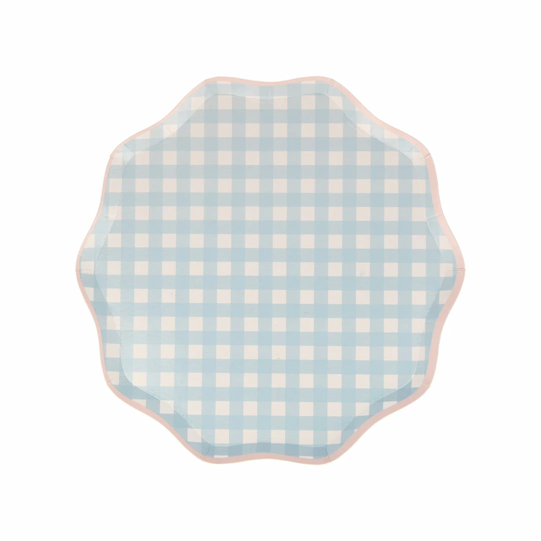 Gingham is a classic spring and summer print, and looks amazing on our party supplies. These plates feature a delightful scalloped edge with a coordinating coloured border. They are perfect for parties and picnics.