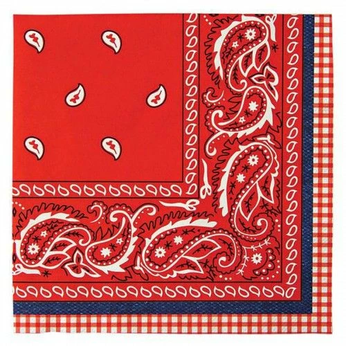 A classic western style paisley pattern mixed with checks and colored with rich reds and blues make this large napkin a great addition to a western party.