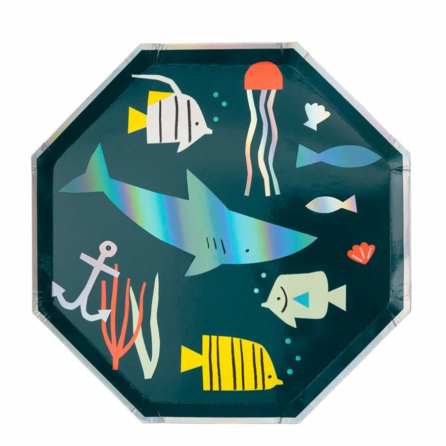 These beautifully illustrated plates are perfect for a party with an ocean theme. Featuring lots of delightful sea creatures and shiny foil detail and border.