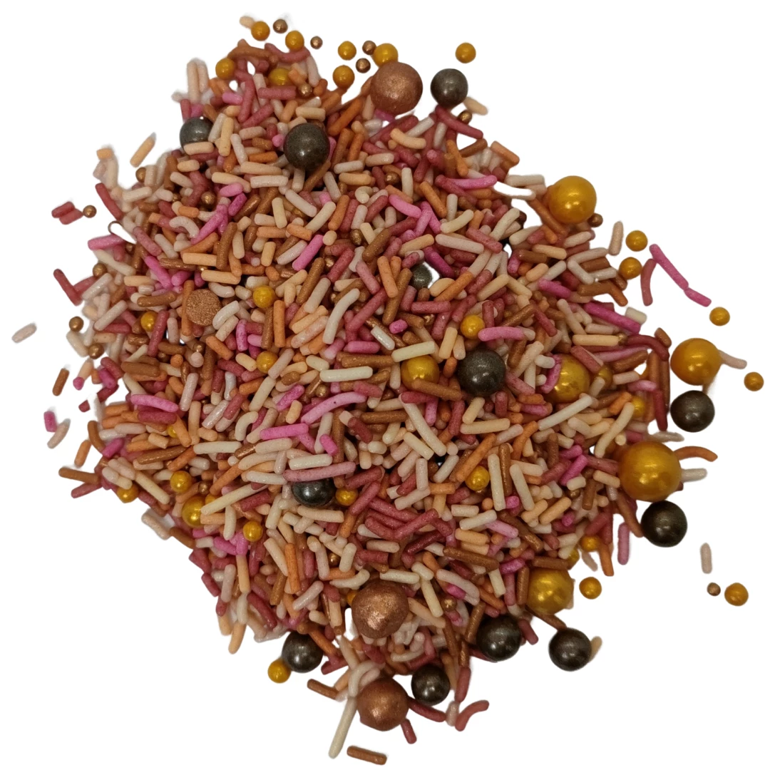 All of the sprinkles in this mix are crunchy and sweet and delicious on their own. This sprinkle mix is the perfect way to make any cake, cupcake, cookie, donut, ice cream or pretty much anything party-ready.