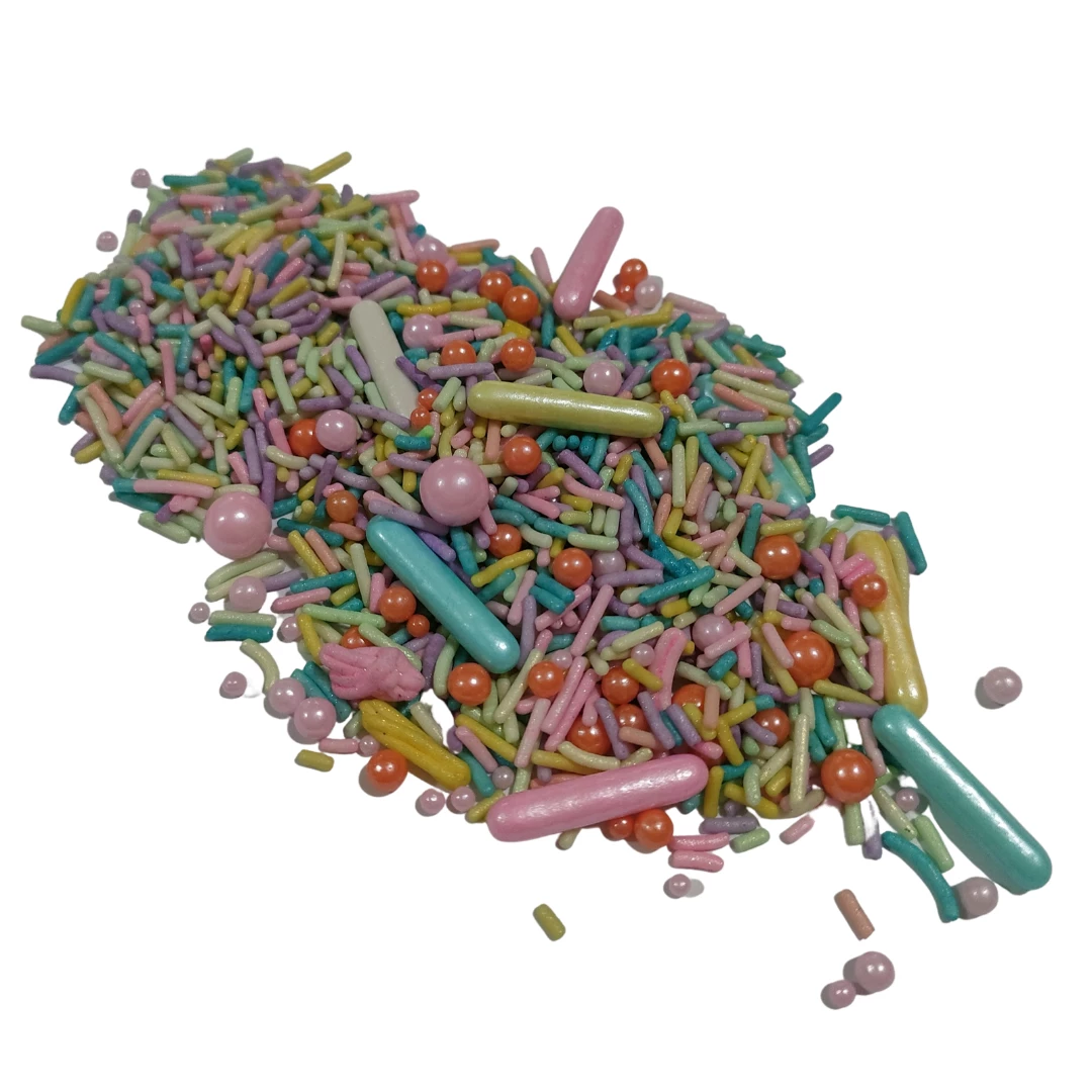 All of the sprinkles in this mix are crunchy and sweet and delicious on their own. This sprinkle mix is the perfect way to make any cake, cupcake, cookie, donut, ice cream or pretty much anything party-ready.