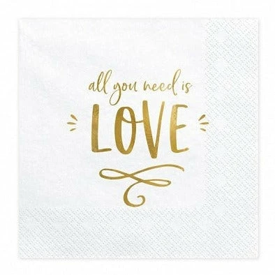 These ‘all you need is LOVE’ gold foiled napkins are the perfect addition to your table at your engagement, wedding, anniversary or Valentines Day celebration .