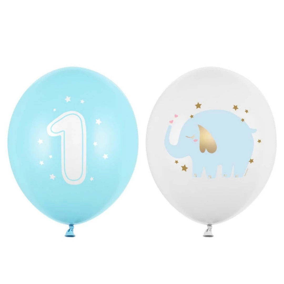 These balloons have a One year print, set contains 2 designs: pastel in Pure White colour with colorful print and pastel in Light Blue colour with white print,