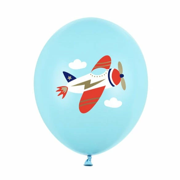 These balloons have a Plane print, set contains 1 design: pastel in Light Blue colour with colorful print,