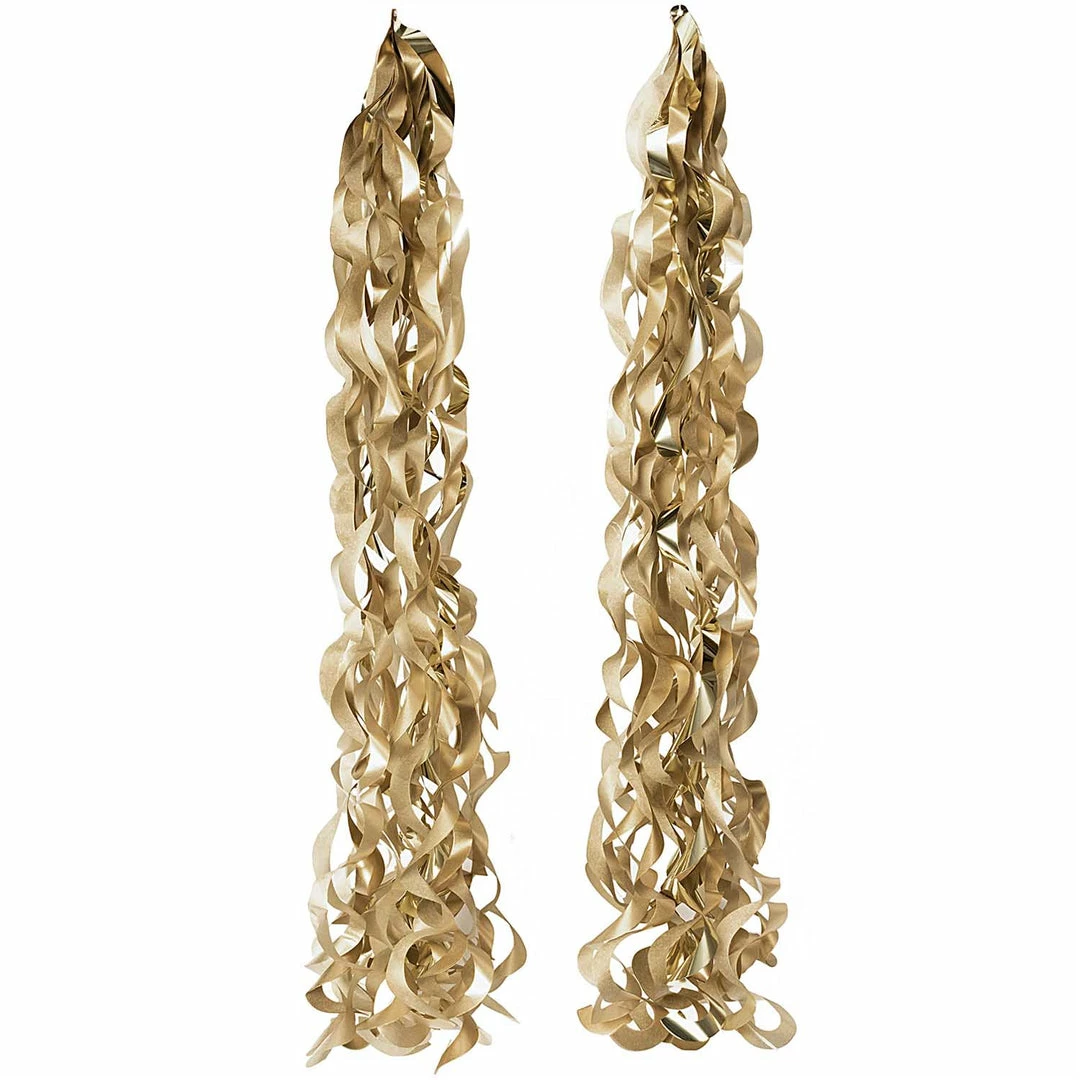 90cm – Tissue Paper Spiral Balloon Tassel – Gold Mix. A great finishing touch to add to Giant Latex or Foil Balloons for maximum impact.