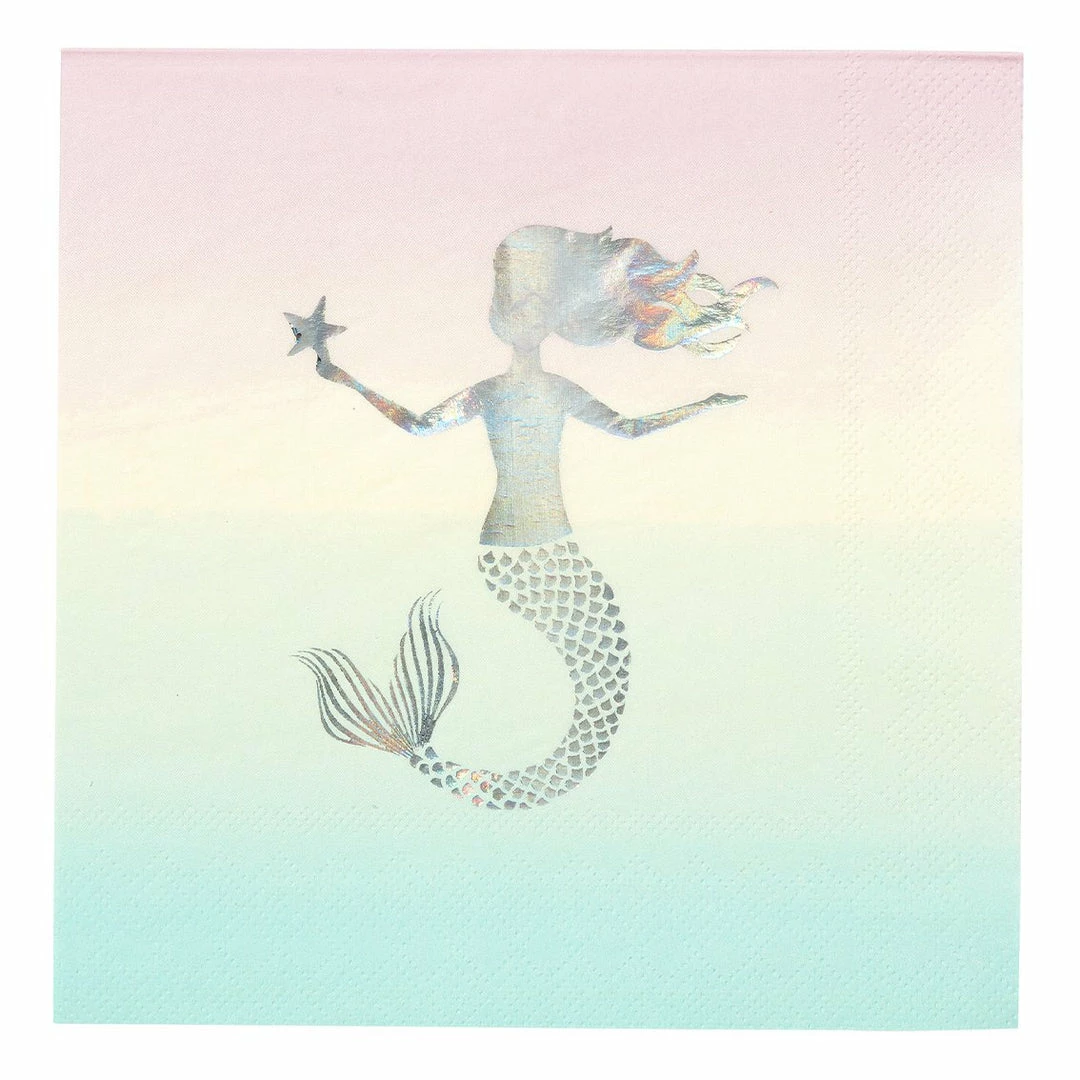 Under the sea! These stunning iridescent detail mermaid napkins are perfect for kids birthdays and plenty of other celebrations alike! With it’s pastel gradient design and holographic detail.