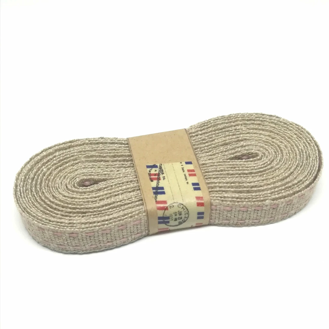 Ribbon – 10mm Flax Saddle Stitch – Natural / Dusky Pink